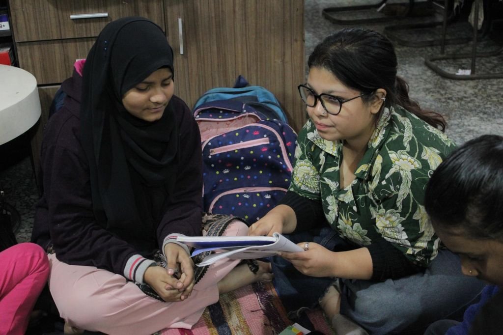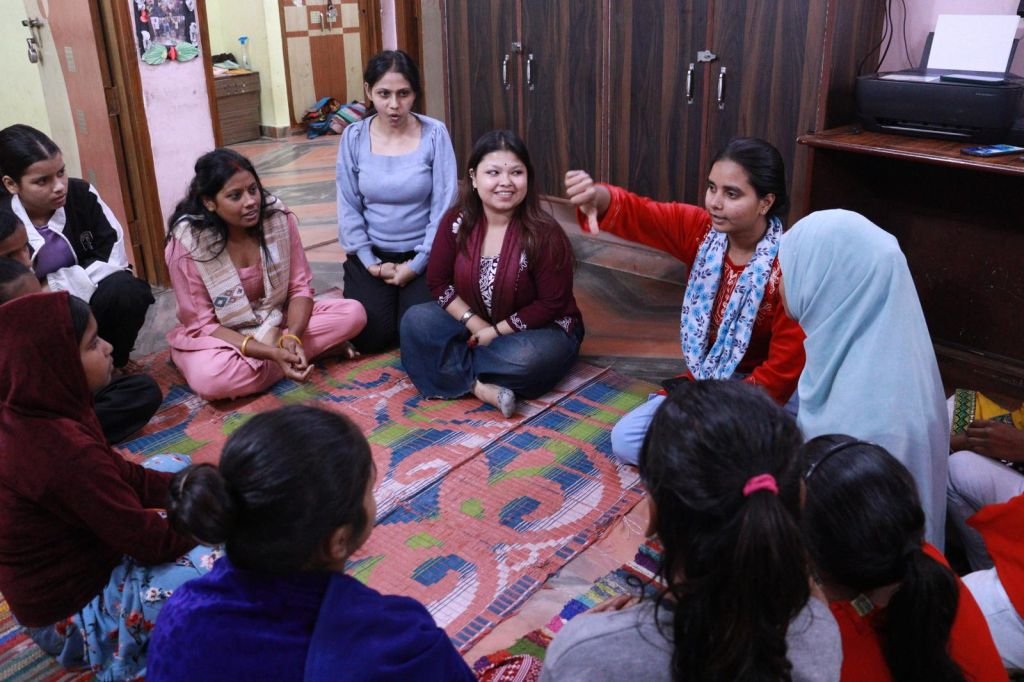Inside the centres, the atmosphere shifts. Girls gather after school hours, some arriving with quiet curiosity, others with confident familiarity. Activities range from educational sessions and expressive exercises to informal conversations that unfold organically in circles on the floor.